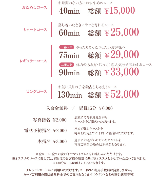キャストの指名をご希望の場合はキャスト名を予約時にお伝えください。